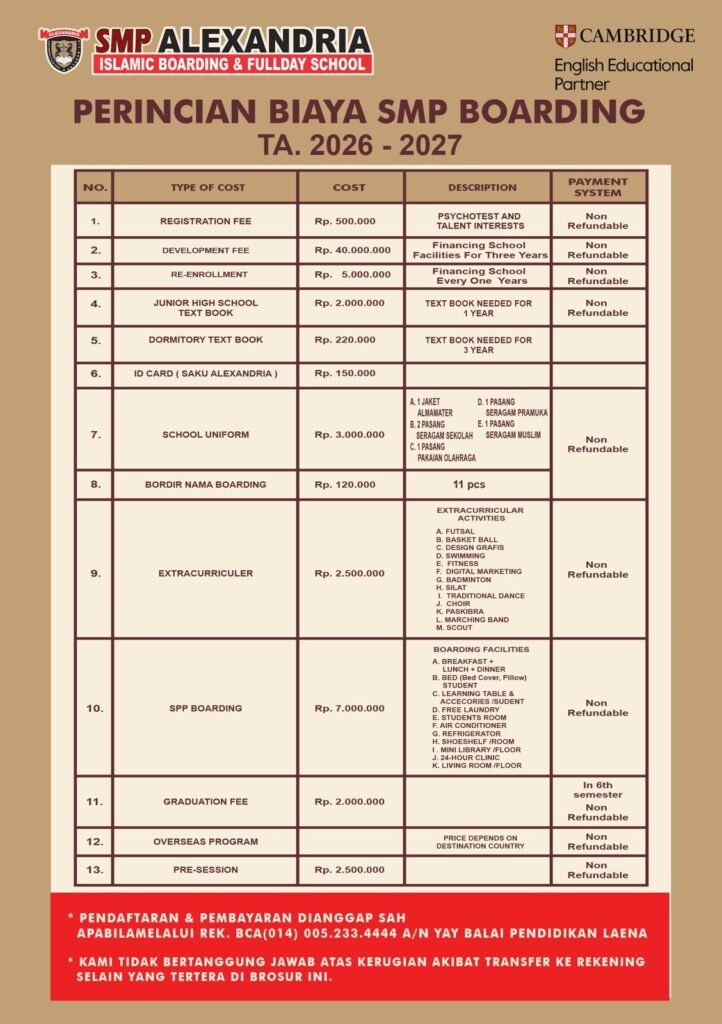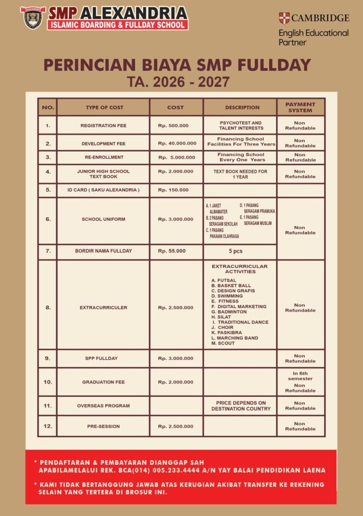 Metode Pembayaran Pendaftaran Siswa Baru Ke Nomor Rekening dibawah ini